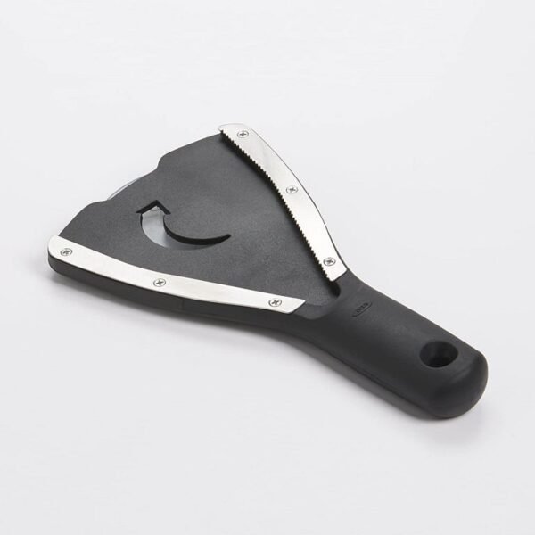 The OXO Good Grips Jar Opener with Base Pad allows users to easily open twist-off lids from 1/2 to 3-3/4 inches in diameter. The metal grip strip with sharp, stainless steel teeth grips the jar lid and makes opening jars and bottles easier. The soft grip handle is ergonomically designed to fit the palm comfortably. The long built-up handle provides increased leverage for twisting jar and bottle lids open with less pressure on the user’s hands and finger joints. The opener measures 9 inches long and 5 inches wide overall. This jar-opening device is designed to easily open jars of all sizes, from small condiment containers to large tubs of mayo. To open the jar, simply hold the jar opener by the handle, wedge it onto the jar lid, and twist it open. Users with decreased hand strength who have difficulty opening jars will find the OXO Good Grips Jar Opener with Base Pad easy to use.