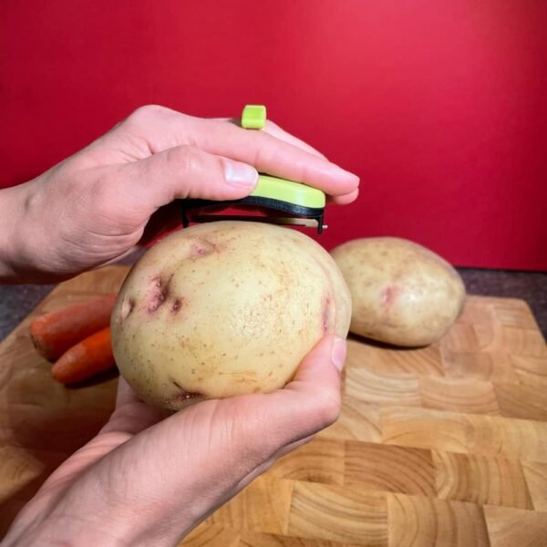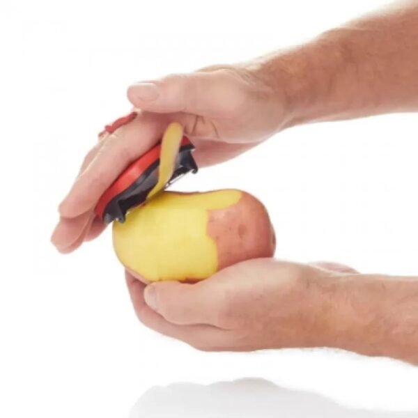The Active Hands EZ Peel Vegetable Peeler is a small palm-size tool that slips over the finger for easily peeling fruits and vegetables. The peeler tucks into the palm, allowing a gentle easy motion instead of a striking motion.