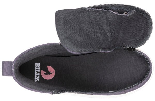 Inspired by a core-skate look, the Charcoal/Black BILLY CS High Tops are sure to deliver. These trending kicks embrace nostalgia, yet remain true to current style. Coming with functional laces for a custom fit, removable insoles for added depth, and a wraparound zipper for unmatched convenience, you’re going to feel good when you Step In!