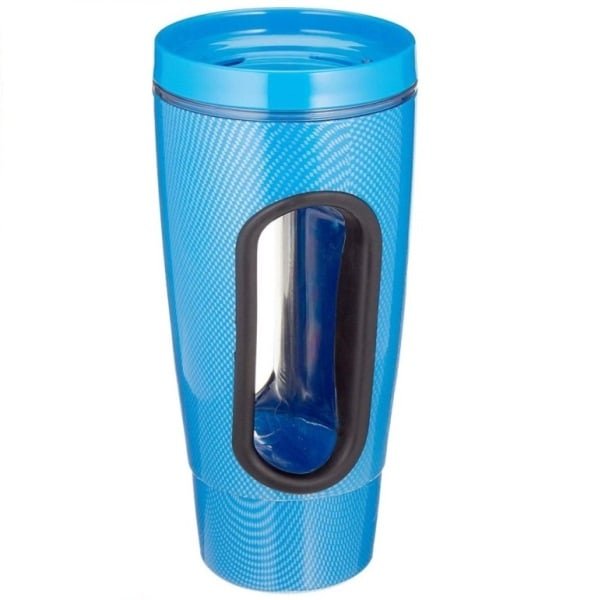 The Easy Grip-In Mug is an 16 ounce adapted drinking mug with an ergonomically curved internal opening that enables the hand to fit through the mug, eliminating the need for grasping. The cup also features an easy open and close lid lever, a 360 degree rotating lid, an adjustable drinking spout, and a non-slip rubber grip base that is cup-holder friendly. The Easy Grip-In Mug is recommended by Occupational and Physical Therapists for people with disabilities, poor hand strength who are unable to grip a traditional mug.