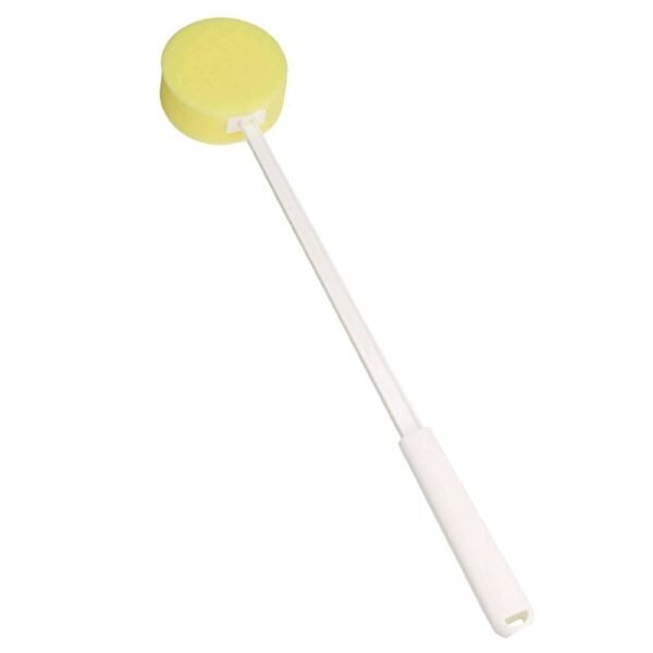Helpful for users with limited reach bathe independently. Round or contoured medical grade bath sponge with antibacterial agent gently scrubs and washes. Ergonomic large grip handle is easy to hold. Long handle allows users to extend reach for easier bathing and showering. Hangs for convenient drying and storage.