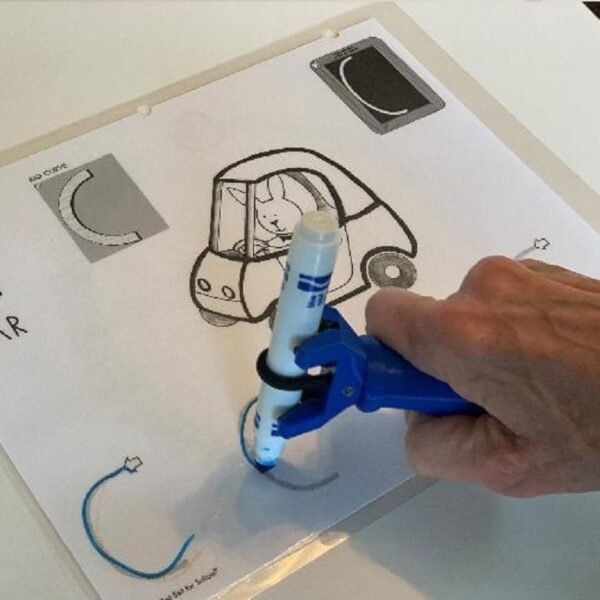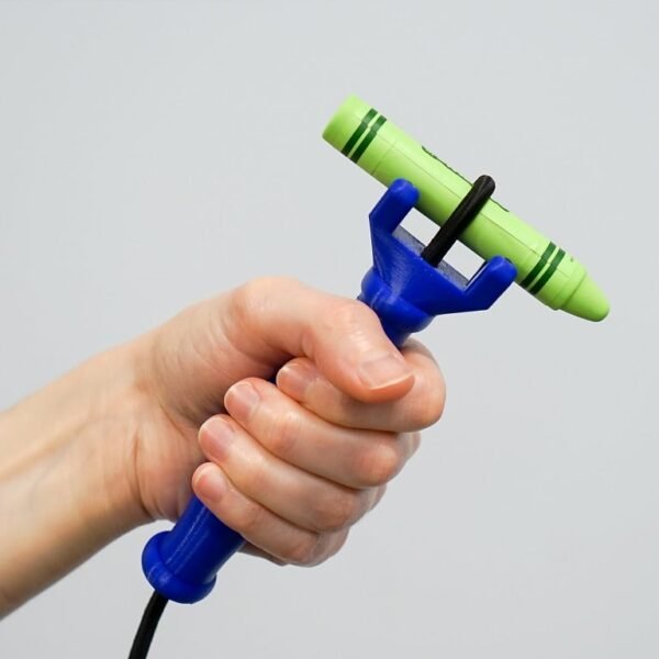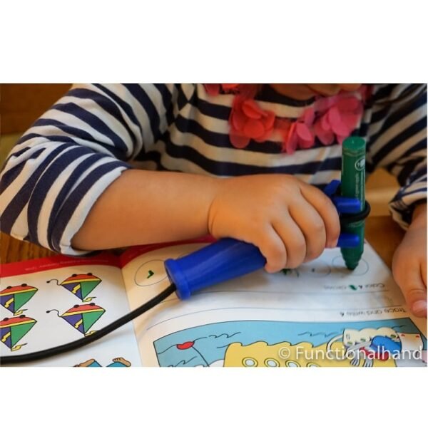 The Functional Hand Universal Handle securely holds objects of varied shapes and sizes and prevents slippage. This universal cuff assists grasping for users of all ages with hand disabilities or impairments. Invented by an occupational and physical therapist, this easy-to-use device supports active use regardless of the user’s grasp abilities, hand weakness, or impairment. This adapted holder can be used with pens, pencils, crayons, markers, stylus, straws, cups, bingo markers, toothbrushes, water bottles, eating utensils, and more. For children who have difficulty with muscle tone, movement, and motor skills, and who may lack the hand control to hold writing utensils, the holder allows increased participation in learning activities. For users with decreased motor skills who lack the hand control to access an electronic device such as an augmentative communication device, iPad, tablet, or phone, this holder can help. The Functional Hand Universal Handle holds a variety of items for everyday tasks.