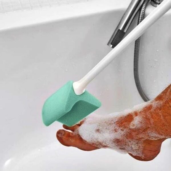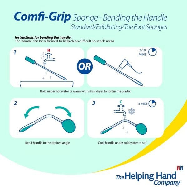The Helping Hand Comfi-Grip Foot Scrub Sponge has a 26-inch long handle that can be heated and bent to the desired angle for easily reaching the feet and legs. The “Comfi-Grip” handle provides a secure hold, even when hands are wet. Wash the top and soles of your feet in the shower or bath using the contoured base of the foot sponge. Then using the tapered toe sponge, easily wash in between your toes without having to bend or stretch forward. People who have difficulty washing between their toes will find this personal hygiene product makes it easy to scrub without bending down or losing their balance. Designed in the UK, the Helping Hand Comfi-Grip Foot Scrub Sponge allows users to wash between the toes and curves of the feet.