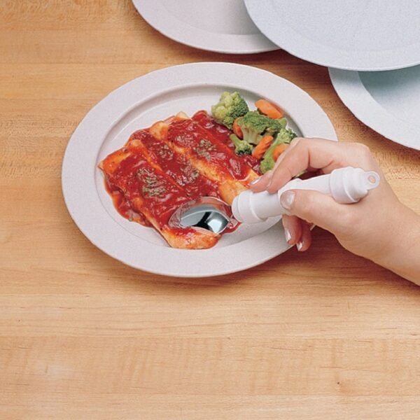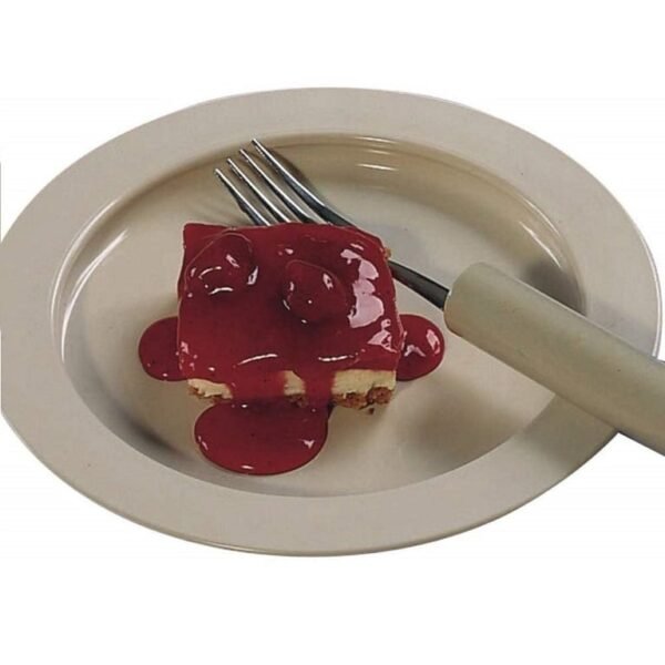 The Inner Lip Plate is an adapted dining plate with an inside lip and extended rim around the entire plate. Users who have difficulty scooping their food will find the raised edge prevents food from sliding off the plate.