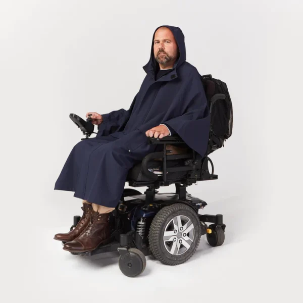 The essential wet-weather apparel for wheelchair users, our new Rain Cape is constructed from a lightweight, water-resistant and windproof fabric, engineered with state of the art technology to keep you dry. A removable back flap keeps the water out of your chair, because nobody likes sitting in a puddle.