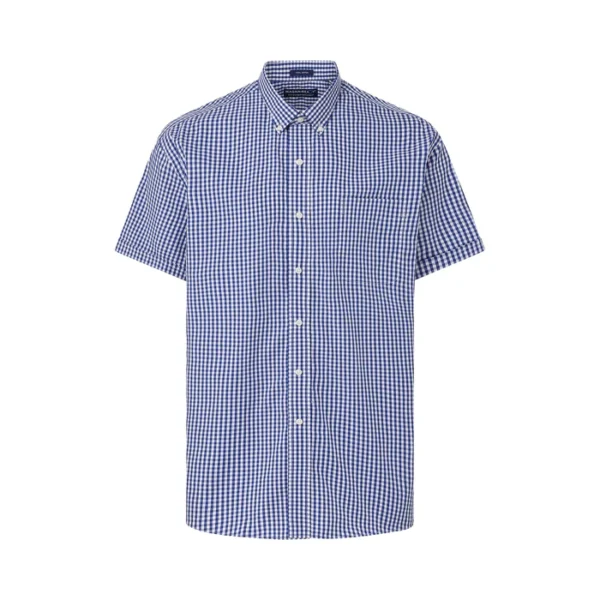 Immerse yourself in the timeless charm of the small gingham pattern delicately woven into a fine poplin fabric, providing a luxurious hand feel. The fixed button-down collar adds a touch of refinement, ensuring you make a statement wherever you go