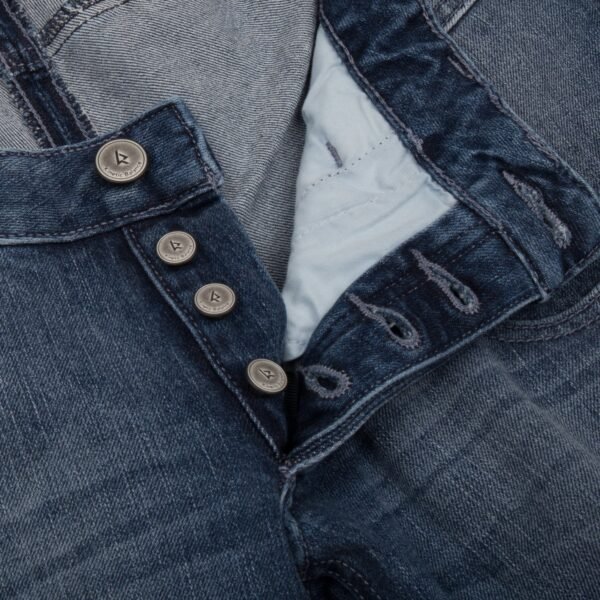 8. Besides the regular ‘button fly’, our jeans are available with a magnetic & hook and loop closure. Quite handy. The loop is of a soft feeling velour that opens & closes softly without noise or hassle.