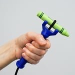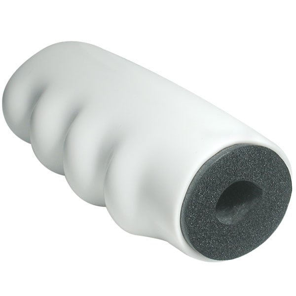 The Slip On Handle has an outside surface that is smooth vinyl with finger bumps to help provide a more comfortable gripping surface. The inside core is foam tubing. The handle measures 1.38 inches in diameter. The Slip On Handle helps people who have difficulty gripping to hold utensils, toothbrushes, pencils and other items.