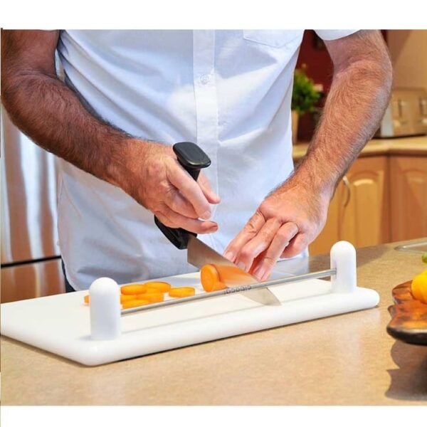 The Stirex Ergonomic Chef’s Knife has a professional grade blade made of high quality, high carbon stainless steel. The wide, 8 inch long blade easily slices through a variety of vegetables, meats and foods. The upright handle design increases leverage in cutting, utilizing the power of the whole arm and conserving energy, thus making it easier to use for those with a weak grasp or reduced hand strength. The large, comfortable to grip, upright handle helps reduce the risk of wrist strain and pain. Users with limited hand strength will find the Stirex Ergonomic Chef’s Knife helpful for preparing a variety of foods.