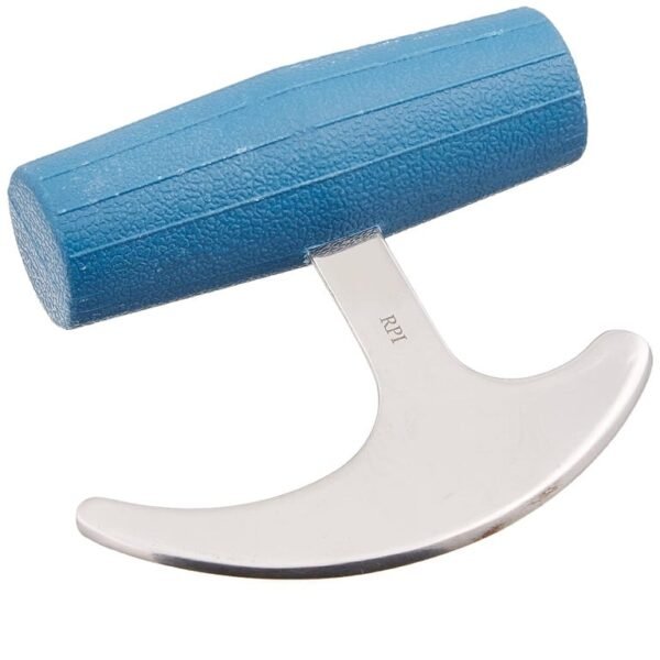 The T-Grip Rocker Knife is intended to be used with a back-and-forth rocking motion, not slicing. Using an overhand or underhand grip, simply apply gentle pressure to the handle with your whole hand then simply rock back and forth. The 4.5-inch stainless steel single-edge curved blade easily cuts through a variety of foods. The creative T-shaped handle is easy to hold for users who have limited hand control or grasp due to arthritis, hand tremors, Parkinson’s, or dexterity issues. The blade is made from high-quality stainless steel and is attached to a horizontal rubber handle. The blade is designed with smooth edges to prevent any accidental cuts and can be sharpened like any other kitchen knife. The unique handle provides a mechanical advantage so that pressure is applied from directly above the object to be cut, therefore less strength and dexterity are needed by the user. Users who have decreased hand strength, or who have difficulty cutting food with a standard knife will find the T-Grip Rocker Knife helpful for increasing dining independence.
