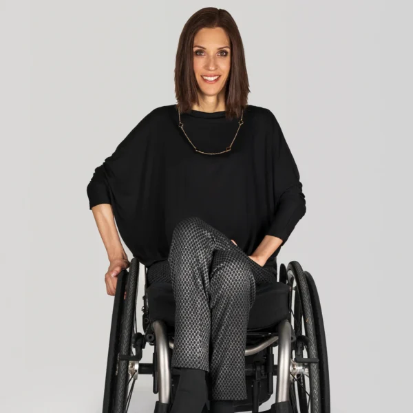 This Dolman-style top is a go-to for our IZ Adaptive founder Izzy Camilleri. The low armhole makes dressing a breeze and it’s simply such an easy-fitting piece and cozy too.
